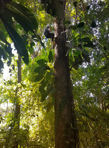 La Vriesea hieroglífica, una bromelia epífita situada en una Ceiba pentandra a más de 35 metros de altura. Y por otro lado, una curiosa Socratea exorrhiza o palmera caminadora, nativa de las selvas tropicales de América del sur y central. Esta última que no dejó en absoluto indiferente al investigador debido a su peculiar forma.